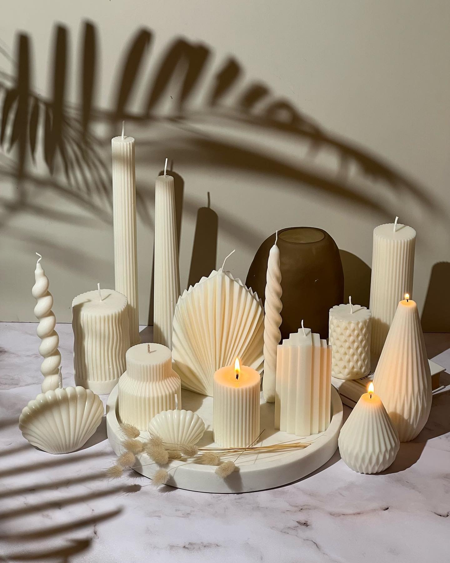 Every scented candle is hand-poured from scratch in unique artisan shapes – elegant ribbed pillars, mesmerizing spirals, contemporary waves, and striking peaked designs. No two are exactly alike, making each piece a luxury statement for your home.
